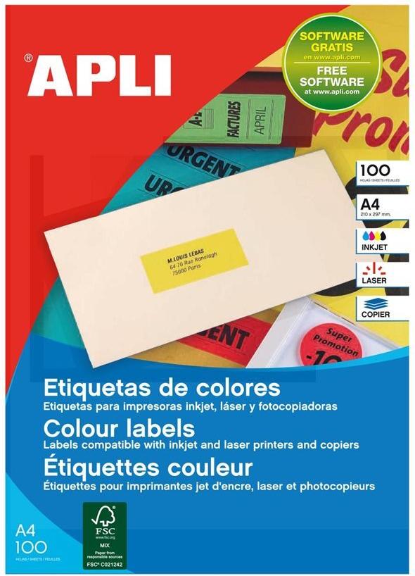 agipa Adress-Etiketten, 210 x 297 mm, neongelb für Inkjet-/ Laserdrucker und Kopierer, nicht ablösbar, - 1 Stück (100754)