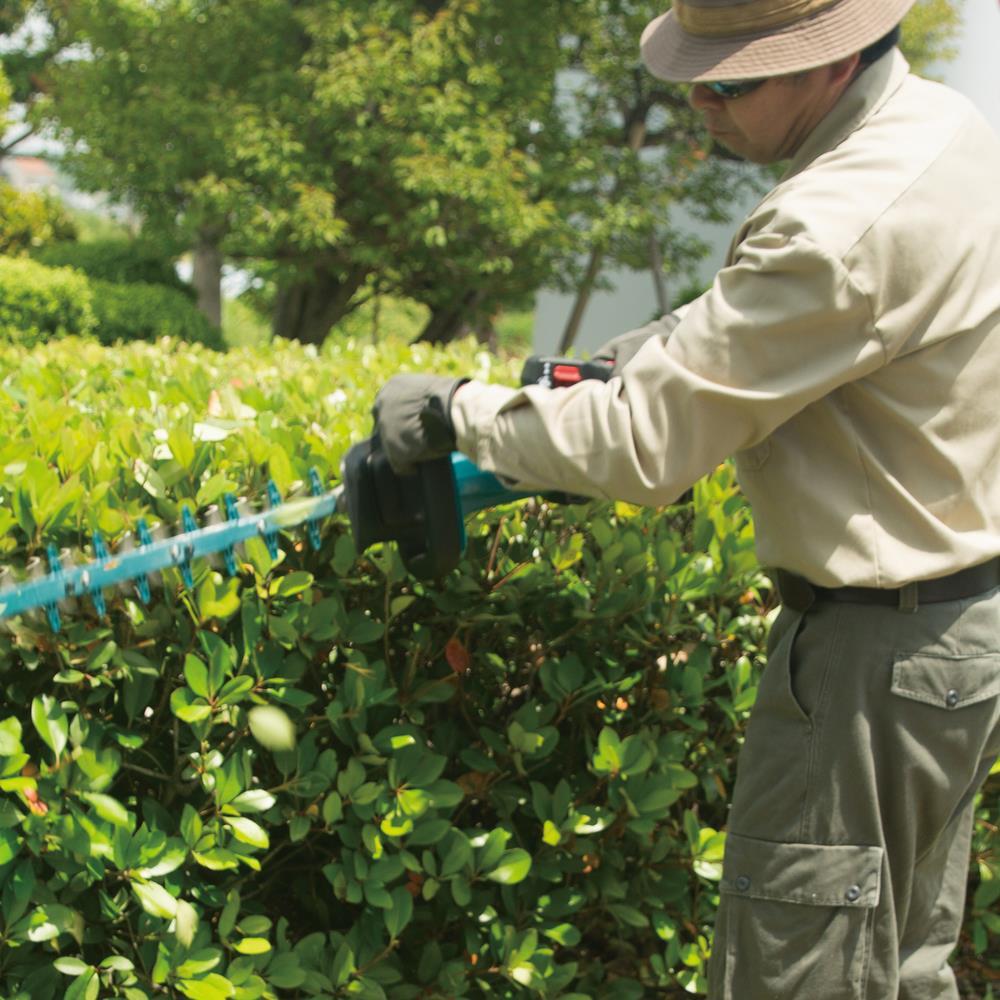 Eine kabellose Heckenschere mit bürstenlosem Motor und einem 500 mm langen, spezialbeschichteten Zweischneideblatt für die Gartenarbeit. Der Zweihand-Sicherheitsschalter bietet zusätzliche Sicherheit und das Gerät ist sehr geräuscharm. Drei Geschwindigkeitsstufen für unterschiedliche Anwendungen. Zwei 5,0-Ah-Akkus und ein Schnellladegerät.