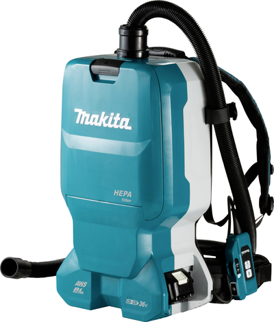 Leistungsfähiger Akku-Rucksackstaubsauger mit 6 Liter Staubsackvolumen. Akku-Rucksackstaubsauger mit bürstenlosem 2 x 18 V-Antrieb. Gerät wird mit gepolsterten Schultergurten bequem auf dem Rücken getragen. Mit dem Auto-Start Wireless System (AWS) lässt sich der Staubsauger drahtlos mit einer Maschine verbinden, der Sauger startet/stoppt automatisch.