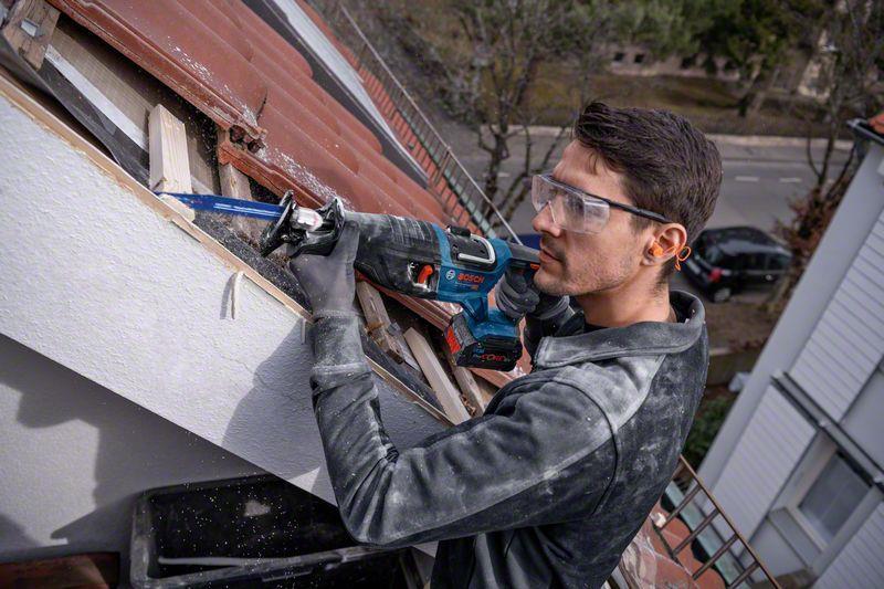 Die GSA 18V-28 ist ideal für Abrissarbeiten mit verschiedenen Materialien wie Metall, Holz, Kunststoff und Dämmmaterialien. Sie ist kompatibel mit dem Bosch Professional 18V System.