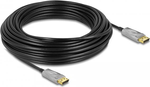 Dieses Kabel von Delock dient dem Anschluss von Geräten mit DisplayPort Schnittstelle, wie z. B. Bildschirmen oder Fernsehgeräten, an einen PC oder ein Notebook. Dieses aktive optische Kabel ist besonders dünn und kann Signale verlustfrei über längere Distanzen übertragen.