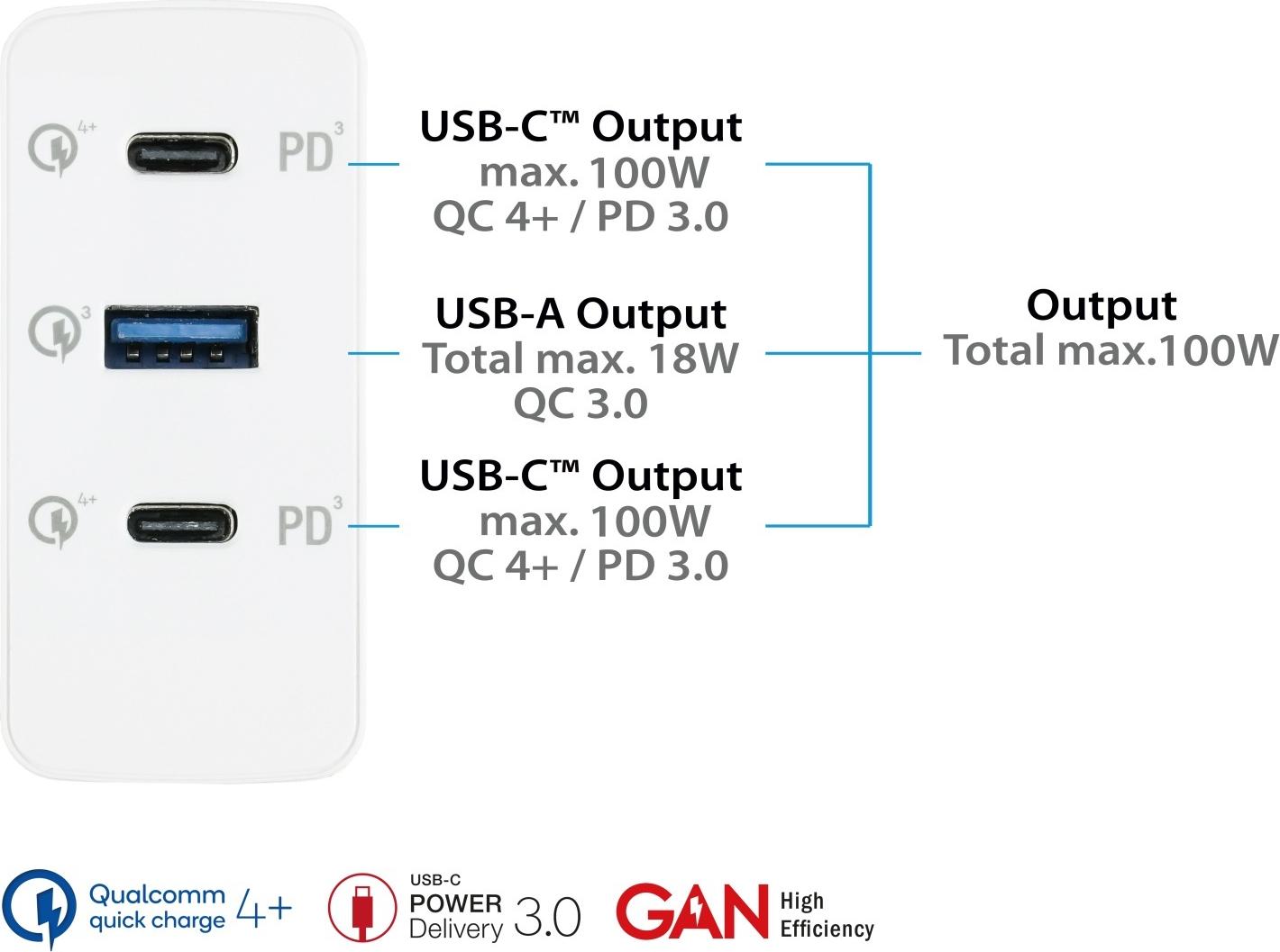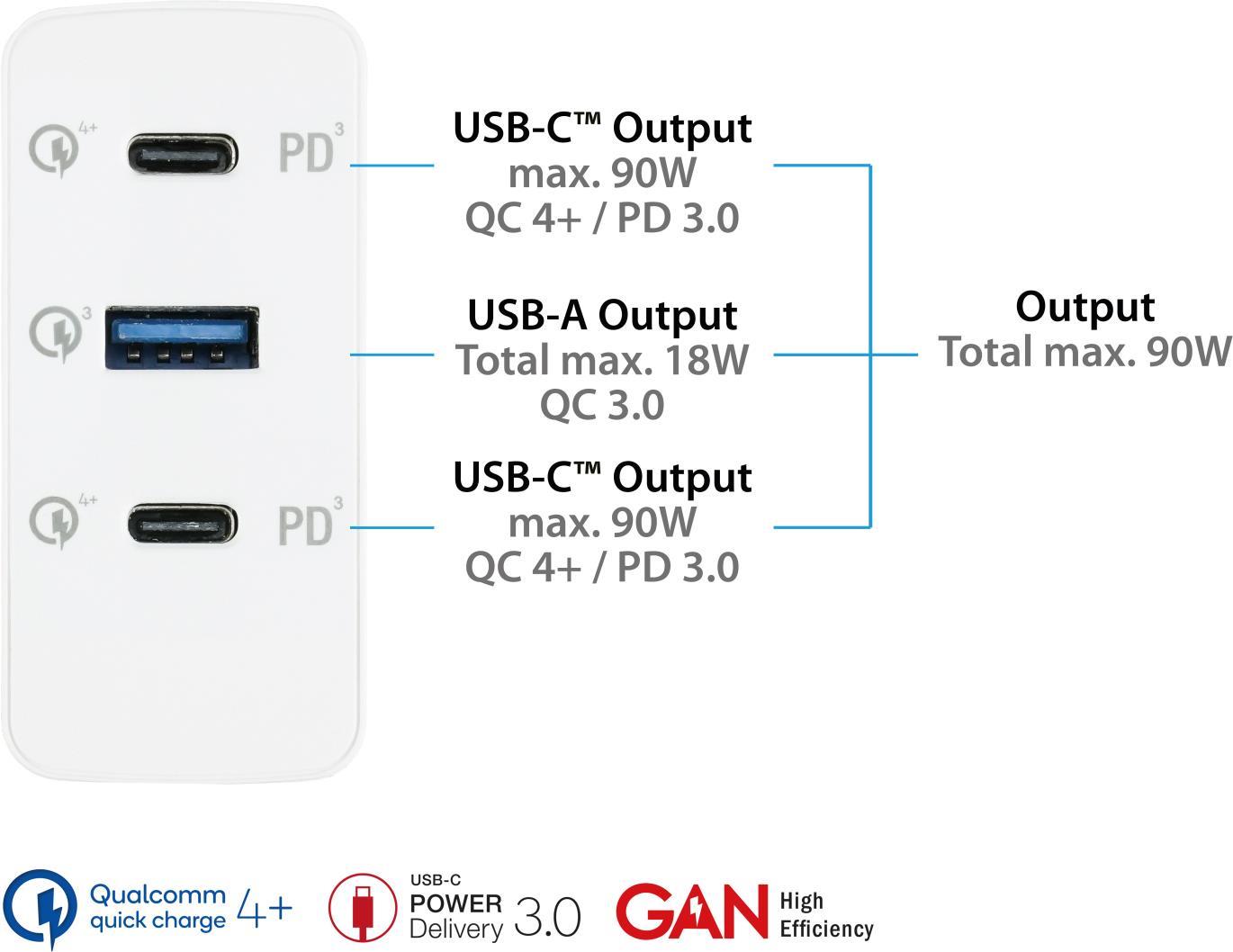 Alcasa PCA-W001W. Aufladetyp: Indoor, Energiequelle: AC, Aufladekompatibilität: Universal. Eingangsspannung: 100 - 240 V, Maximale Ausgangsspannung: 20 V. USB Typ-C Anzahl Anschlüsse: 2, Schnellladung, Energieschutzeigenschaften: Überstrom, ...
