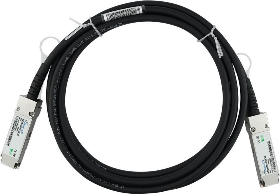 Alcatel-Lucent OS6560-CBL-100 kompatibles Direct Attach Kabel (DAC) als passive 40 Gigabit Twinaxial Kupfer Variante, mit QSFP auf QSFP Verbindung, für den Anschluss von Hardware in Racks und über benachbarte Racks hinweg. BlueLAN Alcatel-Lucent OS6560-CB (OS6560-CBL-100-BL)