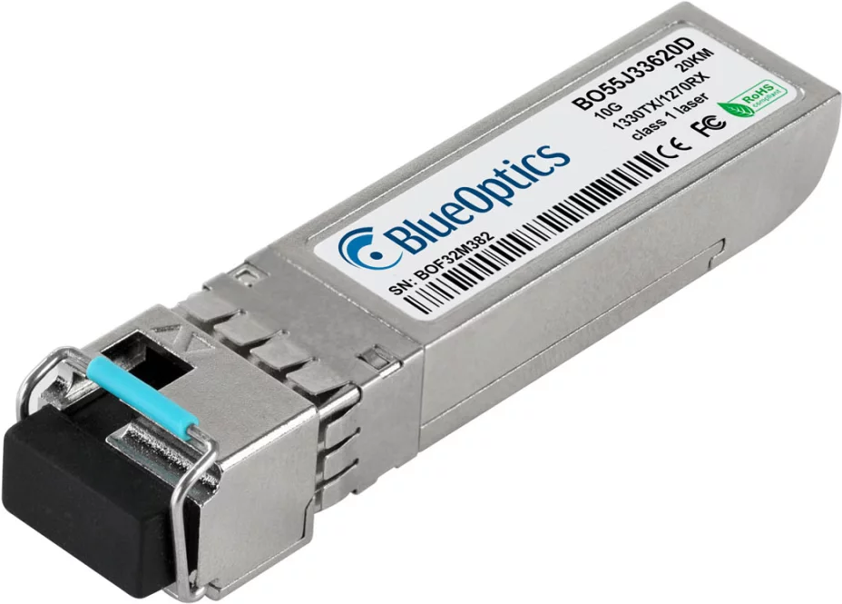 Alcatel-Nokia 3HE12111AB kompatibler BlueOptics SFP+ Bidi Transceiver für Singlemode 10 Gigabit Highspeed Datenübertragungen in Glasfaser Netzwerken. Unterstützt 10 Gigabit Ethernet, Fibre Channel oder SONET/SDH Anwendungen in Switchen, Routern, Storage S (3HE12111AB-BO)