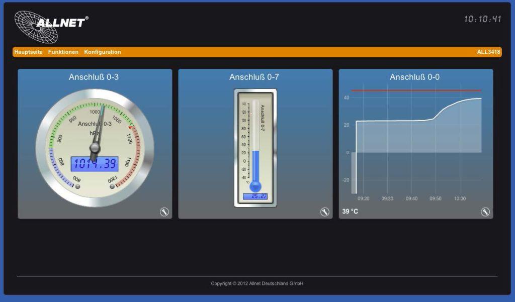 Der ALL3419 IP Thermometer/Sensorzentrale wird per Kabel oder Wireless LAN in ein Computernetzwerk eingebunden und ist über eine IP Adresse erreichbar. Die ermittelten Werte können über einen Webbrowser direkt im Gerät eingesehen werden. Zusätzliche Software ist für den Betrieb nicht nötig. Damit ist der ALL3419 für alle Betriebssysteme geeignet.