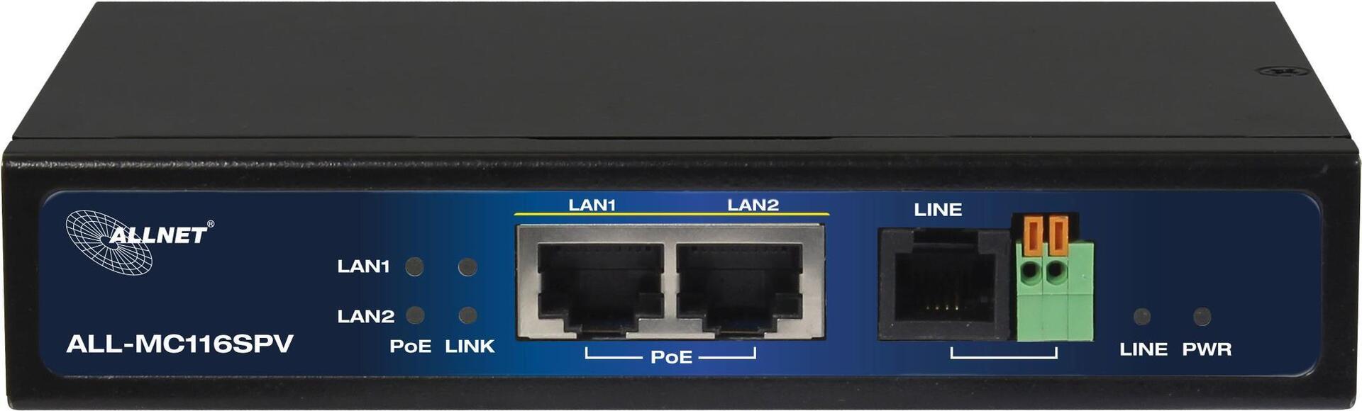ALLNET ISP Bridge Modem VDSL2 mit Vectoring/Point-to-Point Slave-Modem & 2x PoE IEEE802.3at Ports "unmanaged "ALL-MC116SPV-VDSL2 (A193137)