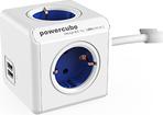 Allocacoc PowerCube extended usb - Stromverteilungseinheit - Wechselstrom 230 V - Eingabe, Eingang CEE 7/7 - Ausgangsanschlüsse: 6 (2 x USB, 4 x Stecker Typ F) - 1.5 m - Weiß/Blau