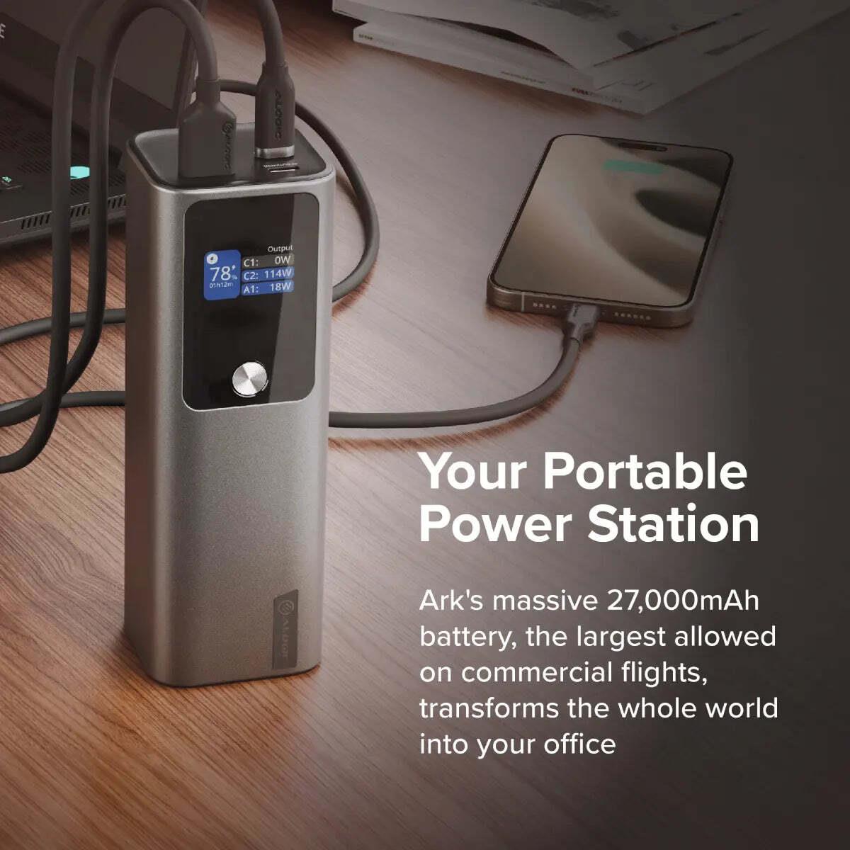ALOGIC Ark - Powerbank - 27000 mAh - 140 Watt - 5 A - Power Delivery 3.1 - 3 Ausgabeanschlussstellen (2 x USB-C, USB) - Silber (A27KPB140W)