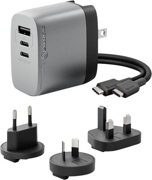 ALOGIC Rapid Power 3X67 - Netzteil - multi country - 67 Watt - 1.5 A - PD - 3 Ausgabeanschlussstellen (USB, 2 x USB-C) - Schwarz, Space-grau (WCM3X67-SGR)