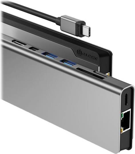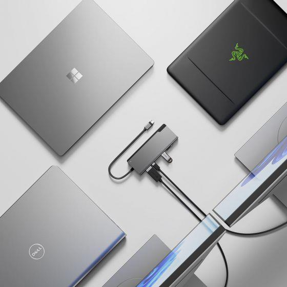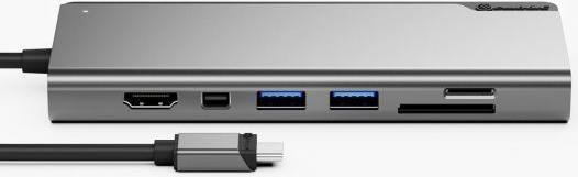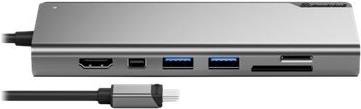 Ausgestattet mit mehreren Schnittstellen, darunter HDMI, Mini DisplayPort und mehrere USB 3.1 Gen 1-Anschlüsse, kann die Dockingstation verschiedene Peripheriegeräte wie SD- und microSD-Karten aufnehmen. Die Ethernet-Unterstützung für Netzwerkverbindungen sorgt für ein stabiles und schnelles Interneterlebnis. Das Gerät ist mit USB-C und Thunderbolt 3 kompatibel, was seine Vielseitigkeit und Benutzerfreundlichkeit unterstreicht und auf Benutzer zugeschnitten ist, die leistungsstarke Konnektivität benötigen.