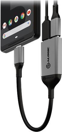 ALOGIC Ultra Series Charging Combo Adapter - USB-Adapter - 24 pin USB-C (M) zu 24 pin USB-C (W) - 10 cm - Stromversorgung + Audio über USB, unterstützt Power Delivery 3.0 - Schwarz, Space-grau (UL2CAPW-SGR)