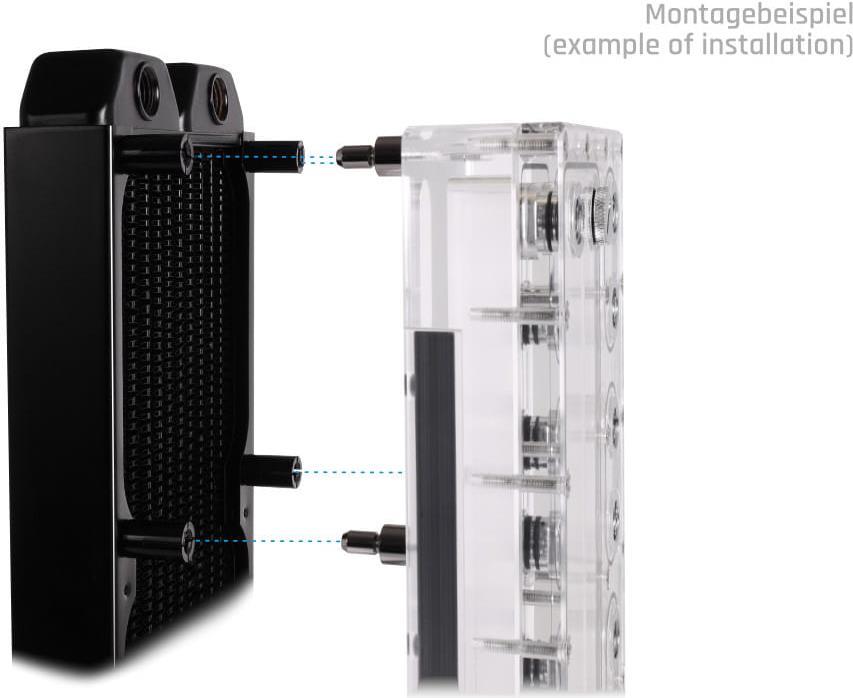 Das Core Push Mounting Kit bietet eine unkomplizierte und sichere Methode, um die Distro Plate von Alphacool an einem Radiator oder im PC Gehäuse zu montieren. Dazu werden die Metall-Pins an der Distro Plate festgeschraubt ...