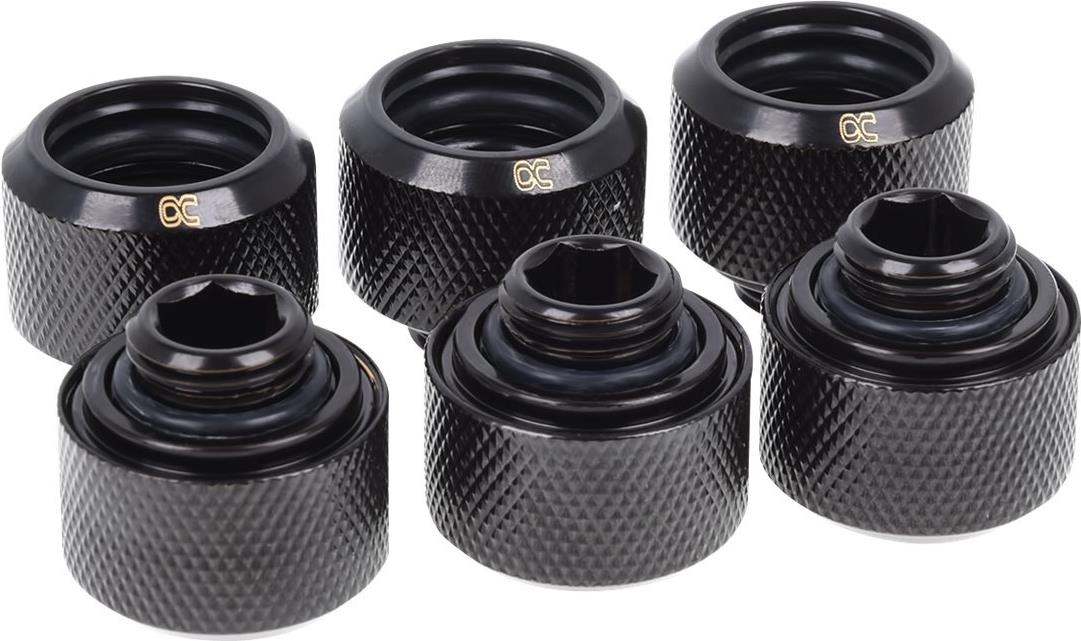 Alphacool Eiszapfen 16mm HardTube Anschraubtülle G1/4 - Deep Black Sixpack (17379)
