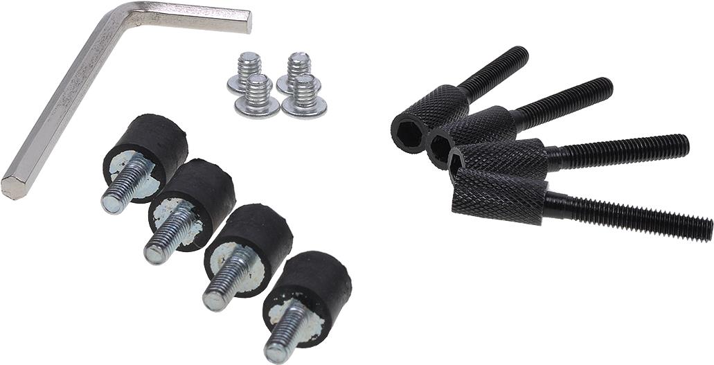 Ein weiteres Feature ist die mitgelieferte Entkopplungsmöglichkeit. Wenn ein Pumpenaufsatz mit einem M4 Befestigungsgewinde, wie beispielsweise der Alphacool Laing DDC Acetal Aufsatz, vorliegt. Durch die speziellen M4 Schrauben kann in den Kopf der Schraube noch die mitgelieferte Entkopplung eingeschraubt werden welche wiederum mit dem Gehäuse verbunden wird.