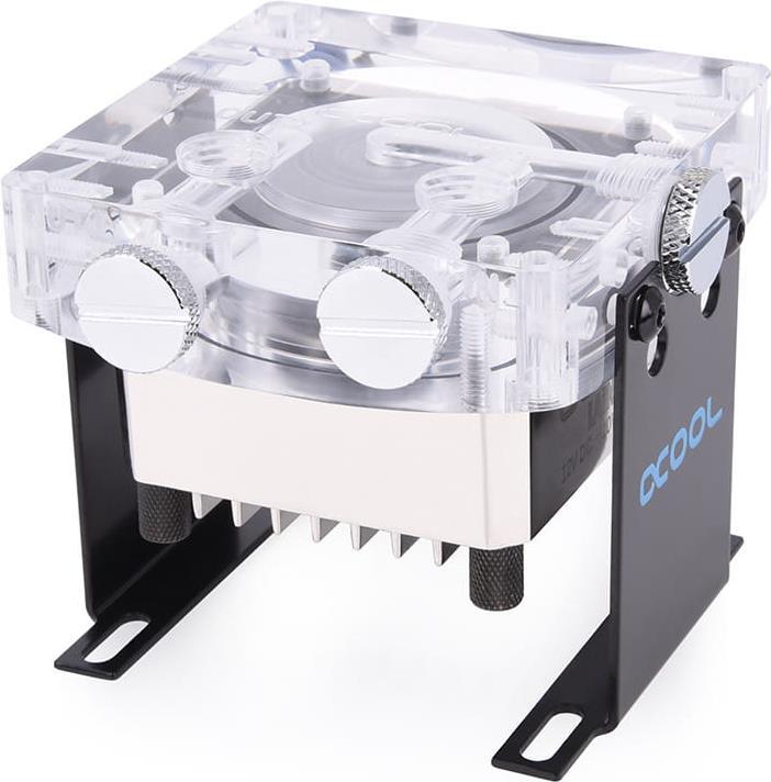 Alphacools neue Low Noise Edition der Laing DDC für absolute Stille! Die weit verbreiteten Laing DDC Pumpen bekommen Zuwachs. Frisch verpackt kann diese Pumpe auch mit viel Selbstvertrauen ihr Leben beginnen. Verändert wurden einige Details. Zum einen wurde einiges an Leistung gespart um einem weit verbreitetem Problem Abhilfe zu schaffen: Die Lautstärke! Kaum eine andere Pumpe kann dieser in Sachen Geräuschentwicklung das Wasser reichen. Für das gängigste Wasserkühlungssystem bestehend aus Kühlung für CPU und GPU sollte diese Pumpe die erste Wahl sein. Nicht wie bisher kommt diese Pumpe in dem bekannten Kunststoff Gehäuse. Neu ist das perfekt abgestimmte Messing Gehäuse welches das Äußere ziert. Dieses neue Gehäuse verspricht eine längere Lebensdauer der Pumpe. Durch die Kühlrippen strömt Luft die über ein innenliegendes Wärmeleitpad direkt an die Pumpenplatine weitergeleitet wird. Ein weiteres Feature ist die mitgelieferte Entkopplungsmöglichkeit. Durch die speziellen M4 Schrauben kann in den Kopf der Schraube noch die mitgelieferte Entkopplung eingeschraubt werden welche wiederum mit dem Gehäuse verbunden wird. Die Neuerung bei diesem Set besteht darin, dass hier die V.2 der Alphacool Eisdecken verwendet wurden, welche die Möglichkeit von drei G1/4" Anschlüssen für den Inlet und zwei G1/4" Anschlüssen für den Outlet bieten. Inletmöglichkeiten: Front, Seite, Top Outletmöglichkeiten: Front, Top Zusätzlich gehören drei G1/4" Verschlussschrauben zum Lieferumfang um die nicht genutzen In/Out Anschlussmöglichkeiten zu verschließen. Als weiteres Feature ist die vormontierte Halterung wie wir sie von den neuen Eisbechern kennen. Somit lässt sich dieses Pumpenset auch direkt an den Gehäuseboden montieren. Jetzt als Kombi mit dem bewährten Alphacool Eisdecke Laing DDC Plexi oder Acetal Aufsatz!
