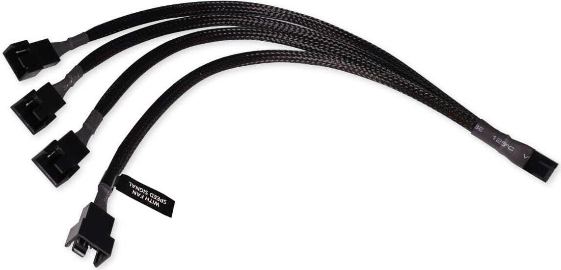 Das 4-Pin auf 4x 4-Pin Y-Splitter Kabel von Alphacool ist eine hochwertige Lösung, um mehrere PWM-Lüfter einfach über das Mainboard anzuschließen und zu steuern, ohne dass ein separates Lüftersteuerungs-HUB benötigt ...