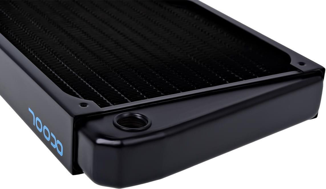 Der Finnenabstand wurde so gewählt, dass der Radiator optimale Kühlleistung bereits mit langsam und mittelschnell drehenden Lüftern erreicht. Dies ist nicht nur angenehm in Hinsicht auf Geräuschkulisse, sondern schränkt auch bei der Lüfterwahl nicht ein.