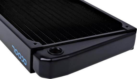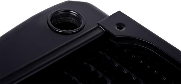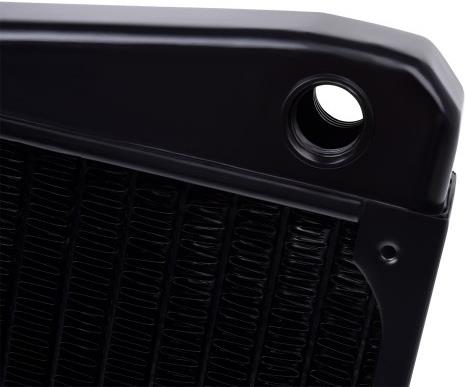 Der Finnenabstand wurde so gewählt, dass der Radiator optimale Kühlleistung bereits mit langsam und mittelschnell drehenden Lüftern erreicht. Dies ist nicht nur angenehm in Hinsicht auf Geräuschkulisse, sondern schränkt auch bei der Lüfterwahl nicht ein.