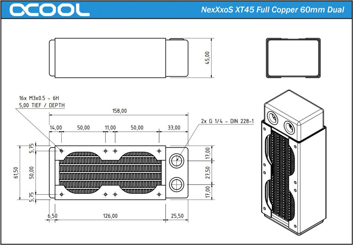 • Alphacool NexXxoS XT45 Full Copper 60mm Dual Radiator (14223)
