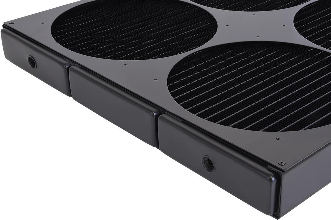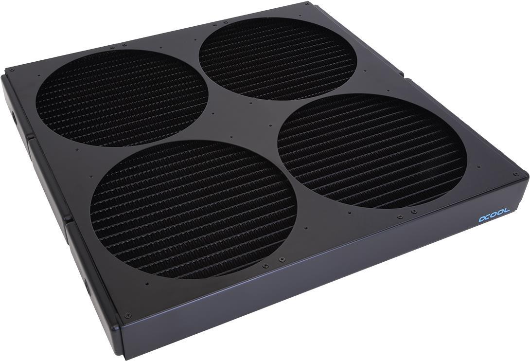 400 x 400 x 45 mm reine Kühlfläche für neun 140 oder vier 200 mm Lüfter. Kein weiterer Alphacool Radiator bietet derart viel Kühlfläche am Stück.