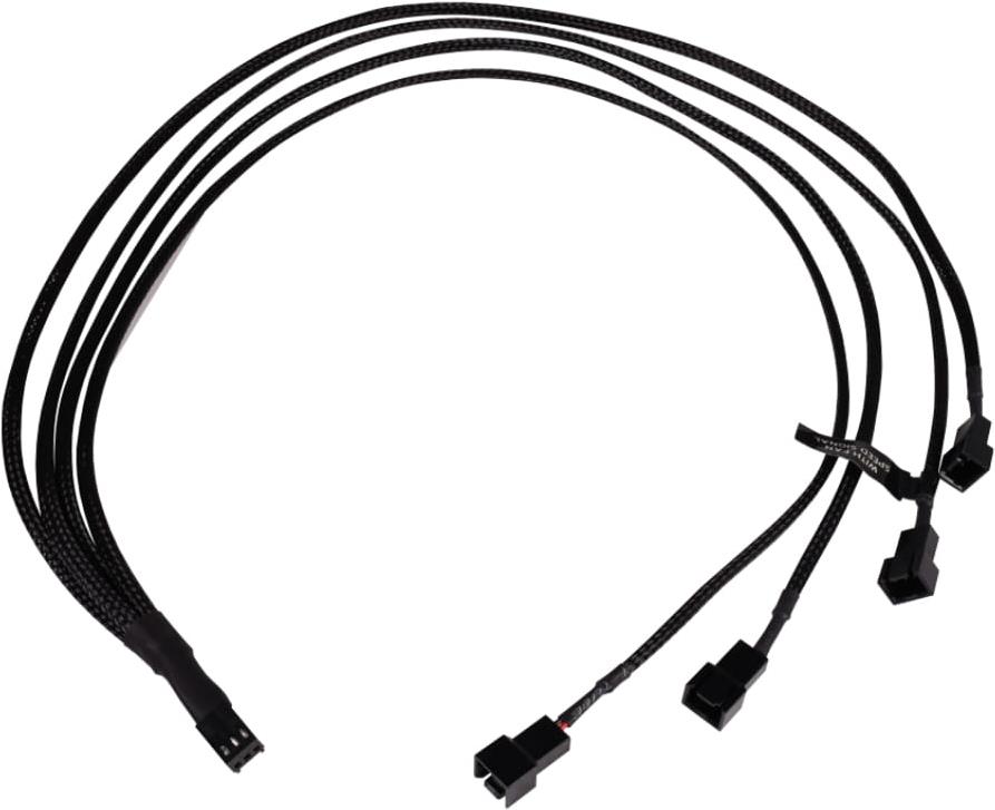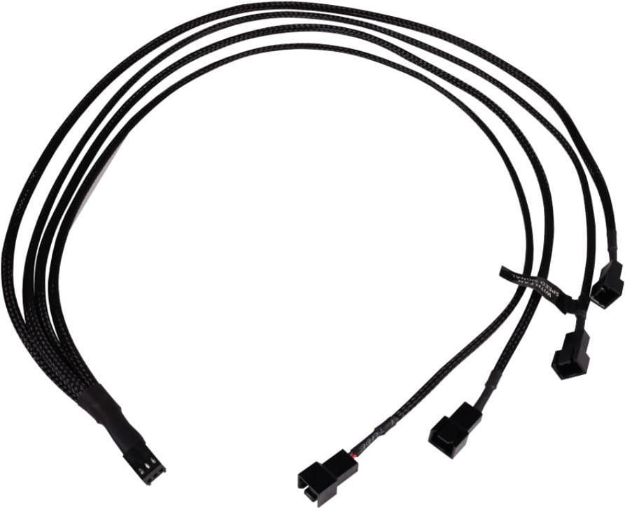 Gesleevtes 3-Pin to 4x 3-Pin Y-Splitter Verteilerkabel. Verteilt Stromversorgung und RPM Signal auf mehrere Lüfteranschlüsse. Das Sleeving bietet zusätzlichen Schutz, Stabilität und eine längere ...
