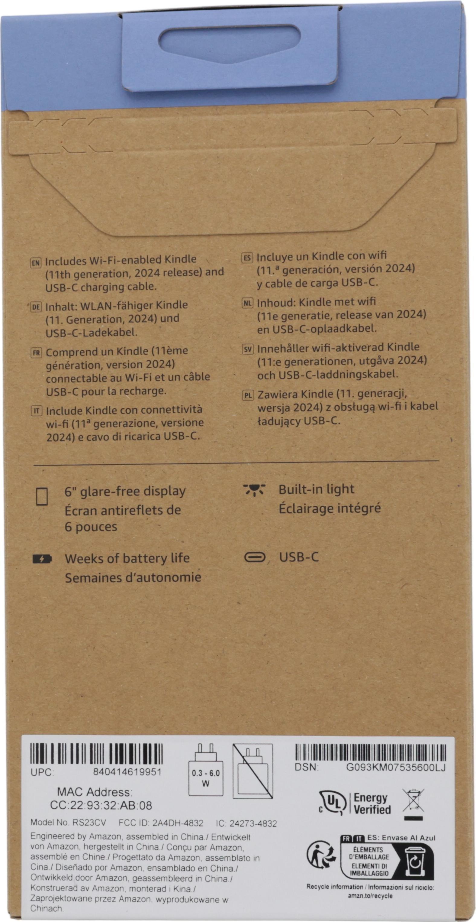 | Enthaltene Artikel | Amazon Kindle, USB-C Ladekabel |