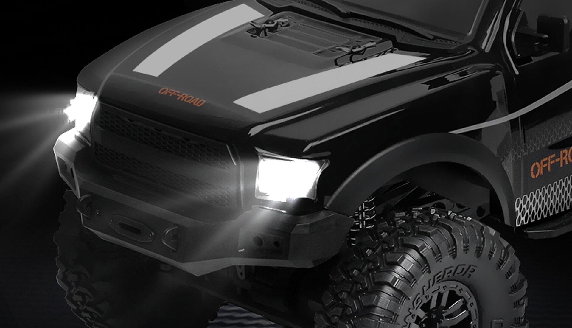 Coole SUV Pick-Up Optik trifft auf modernste Features. Dank kräftigem Motor, dem 4WD Allradantrieb und den Oversized-Reifen findet dieser Climbing SUV im Maßstab 1:10 immer seinen Weg aus der Wildnis. Bei Dämmerung hilft ...