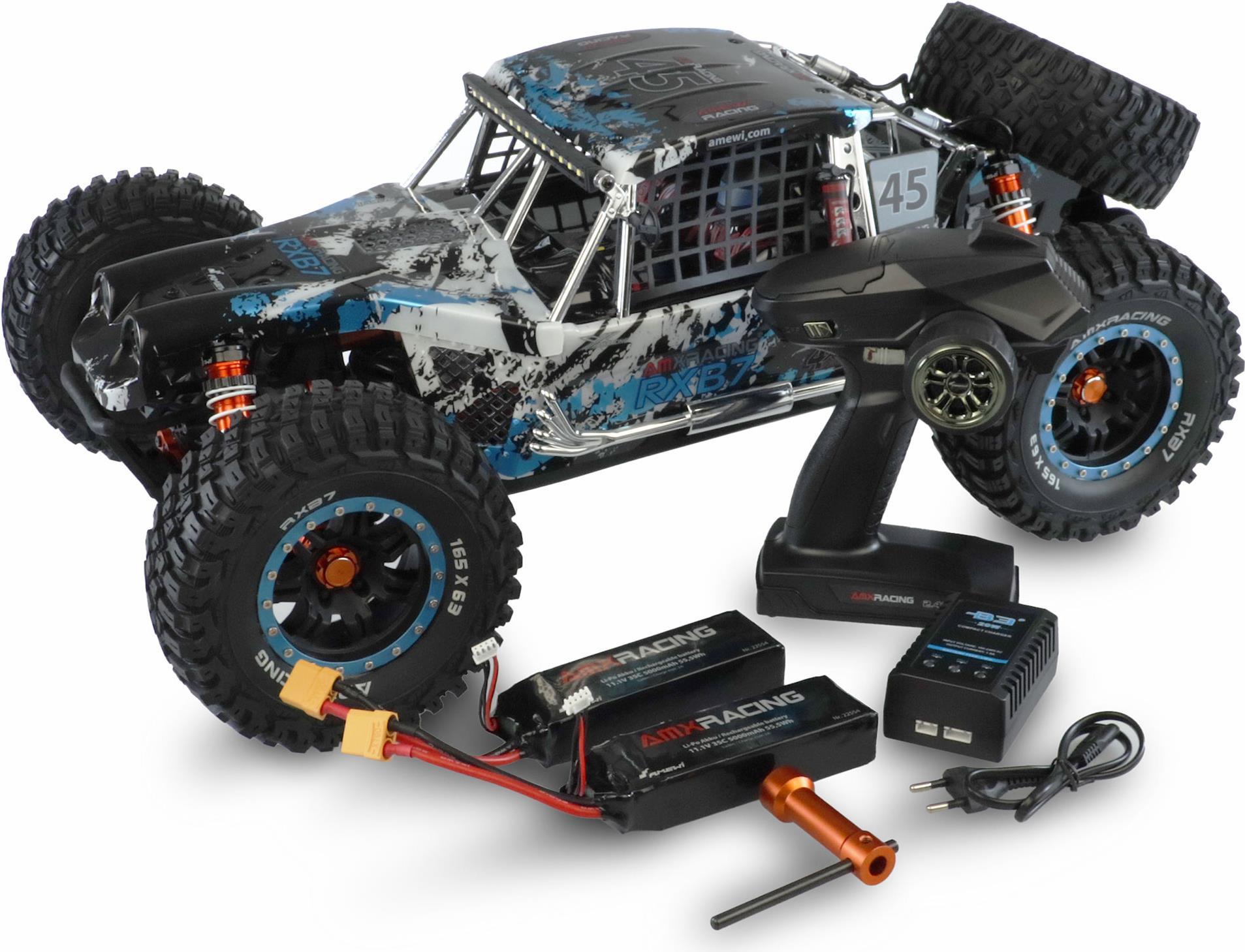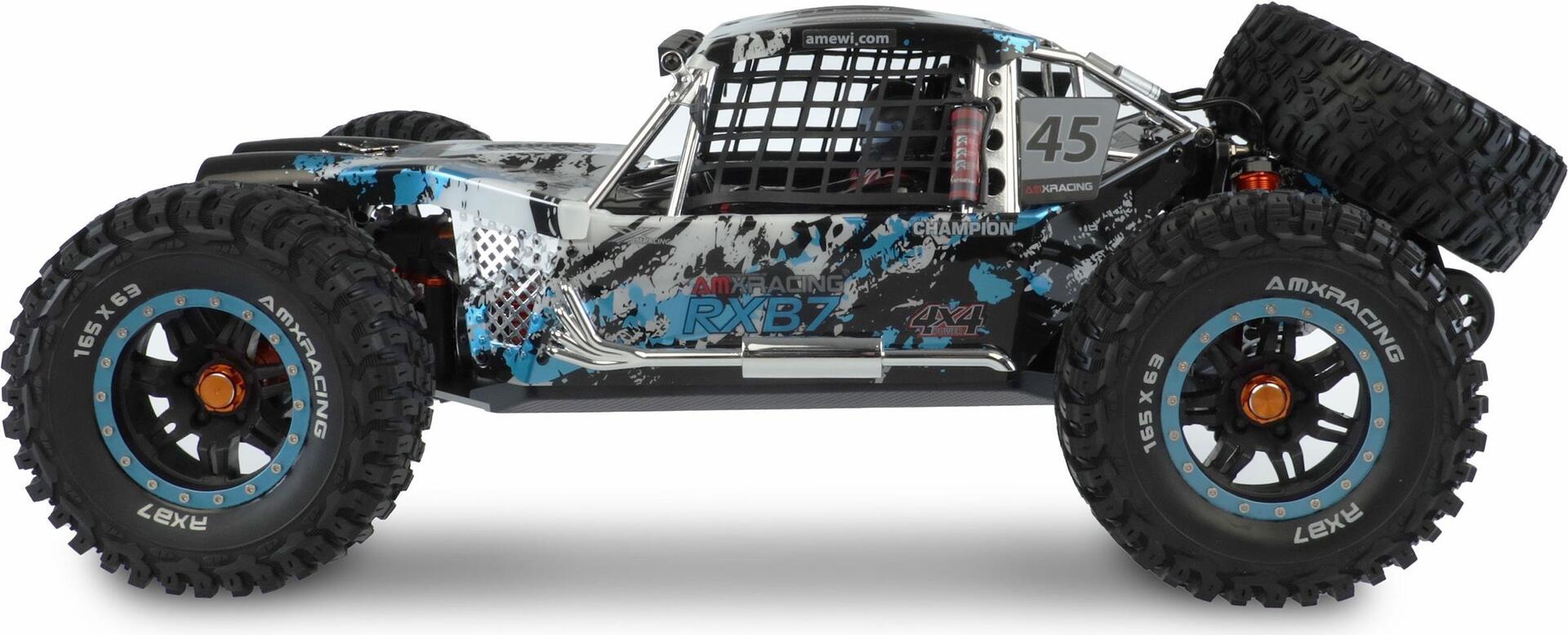 Amewi AMXRacing RXB7 Blau Brushless 1:7 RC Modellauto Elektro Buggy Allradantrieb (4WD) RtR 2,4 GHz Inkl. Akku und Ladegerät (22554)