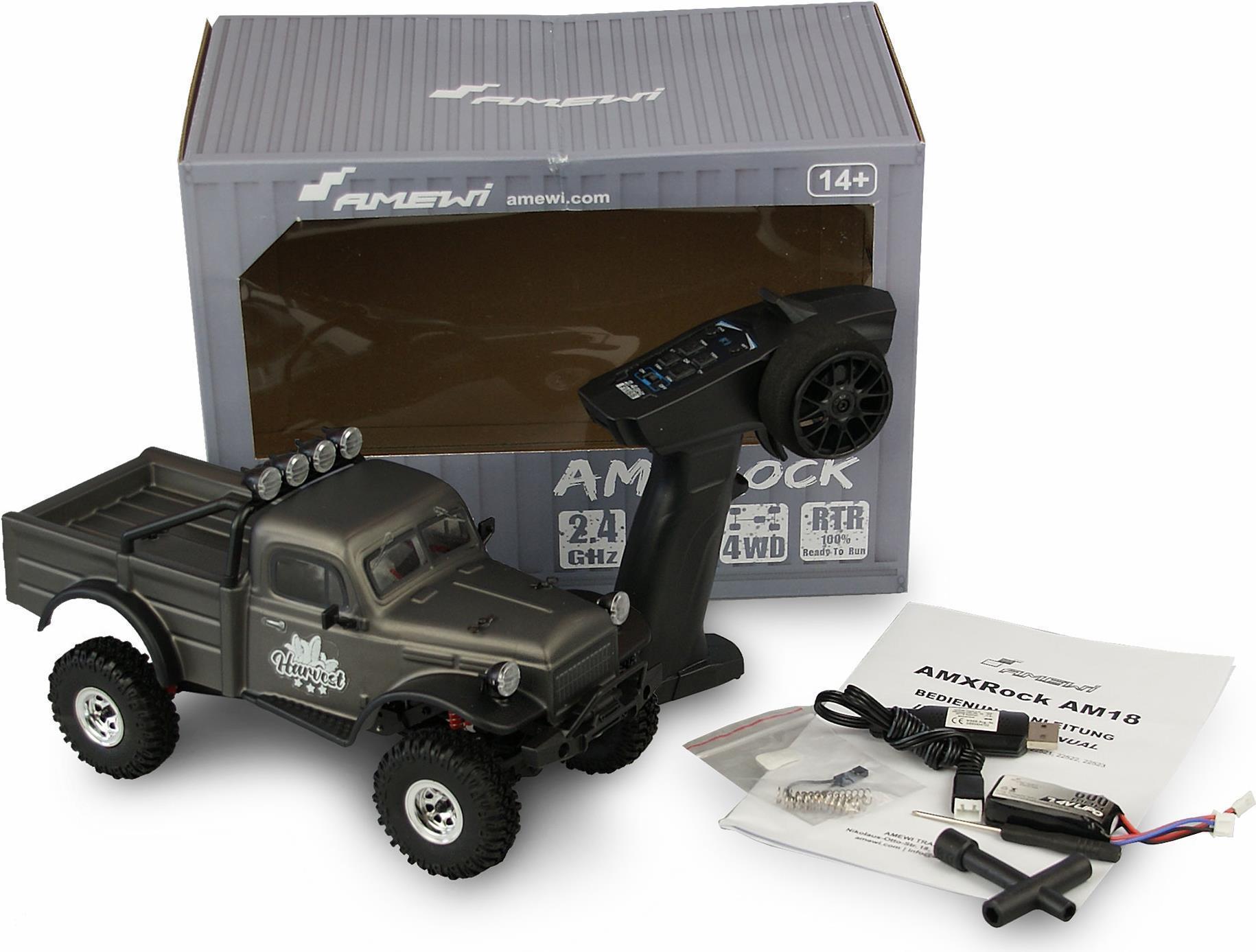 Leistungsfähige Technik trifft auf eindrucksvolle Scale Optik - dieser kleine Scale Crawler im Design eines Pick-Up Trucks bringt alles mit, um in der Liga der Super Crawler mitzuspielen. So verfügt der AMXRock AM18 ...