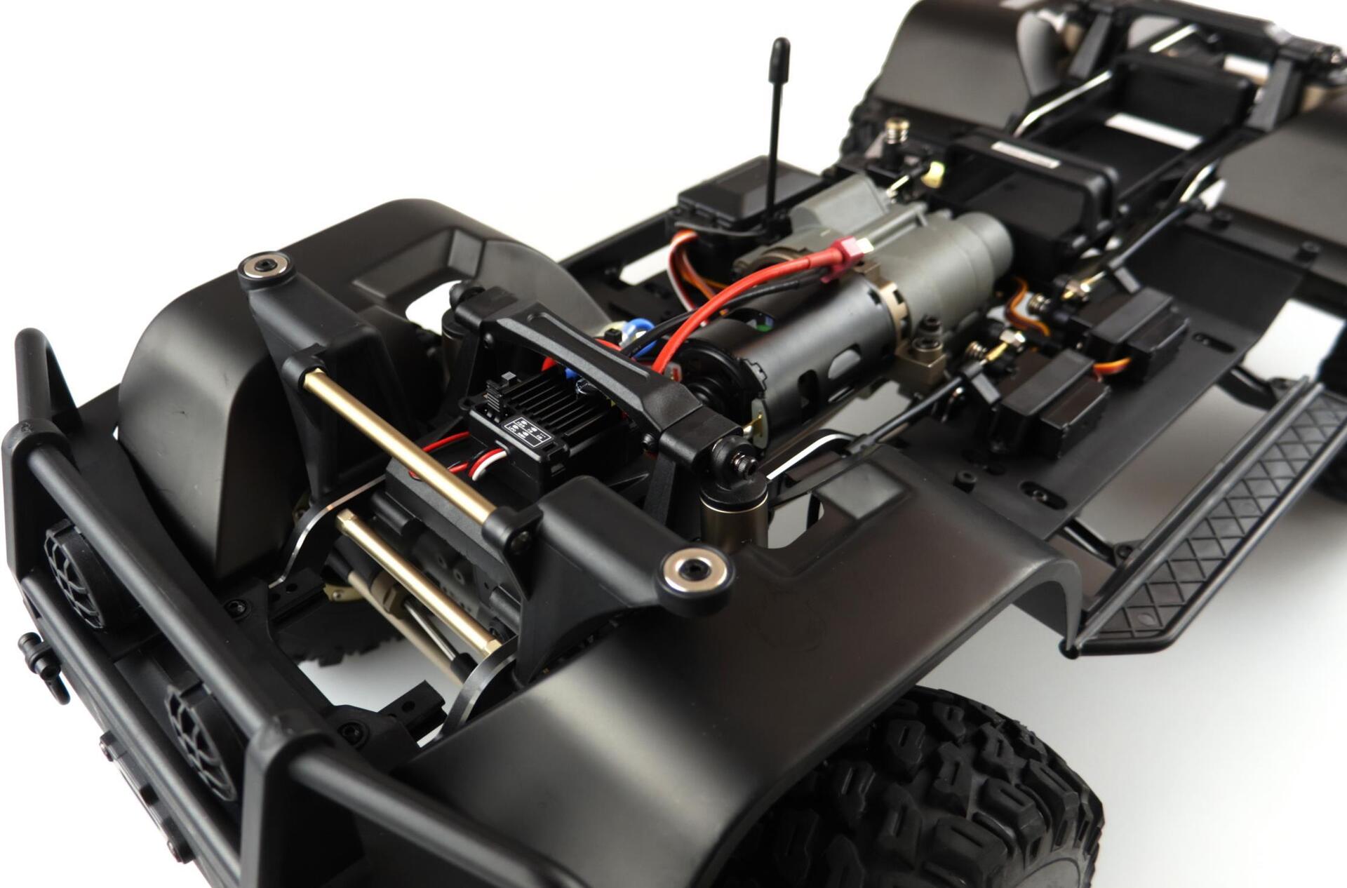 Dieser Top Crawler im Maßstab 1:8 vereint super Technik mit genialen Fahreigenschaften. Ausgestattet mit einem massiven 5mm starken Metallrahmen, Portalachsen, Aluminium Streben, Metall ...
