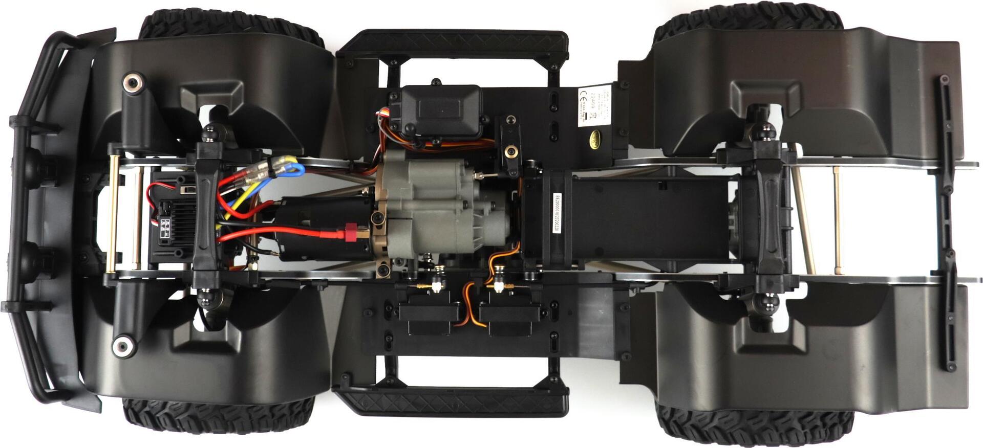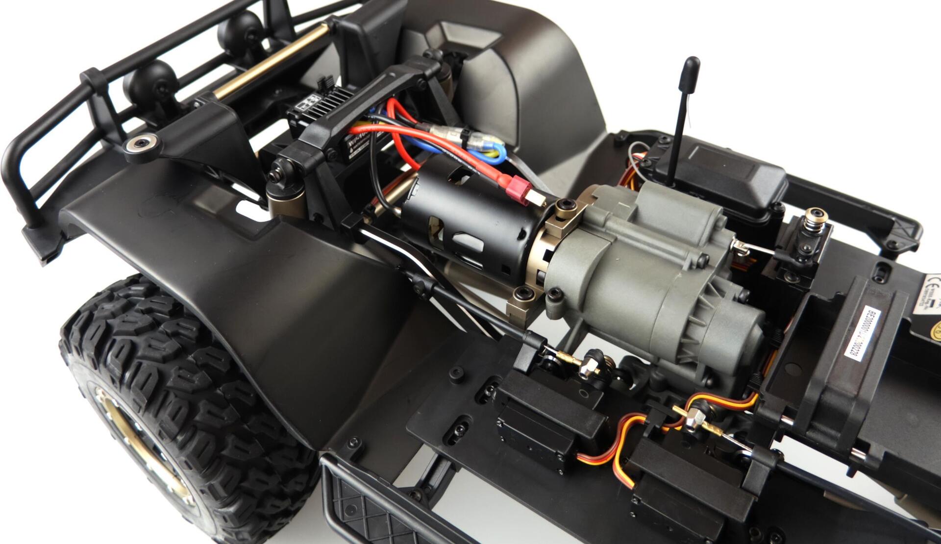 Dieser Top Crawler im Maßstab 1:8 vereint super Technik mit genialen Fahreigenschaften. Ausgestattet mit einem massiven 5mm starken Metallrahmen, Portalachsen, Metall Linkages, ...