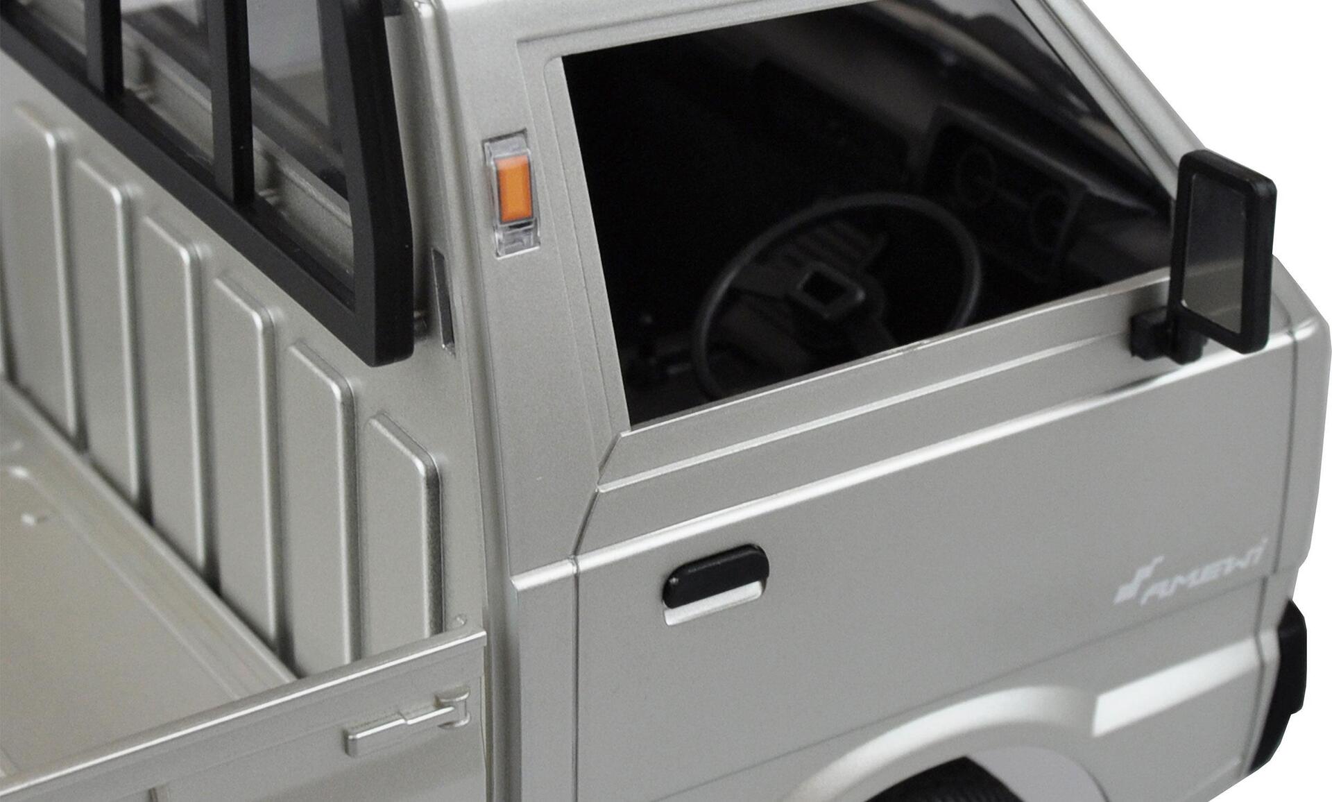 Scale Nachbau eines typisch asiatischen Mini Transporters (Kei Truck) in hochwertiger Lackierung (silber / grau metallic) und mit vollproportionalen Fahrfunktionen. Zudem verfügt das Modell über ein 2-Gang-Getriebe (über ...