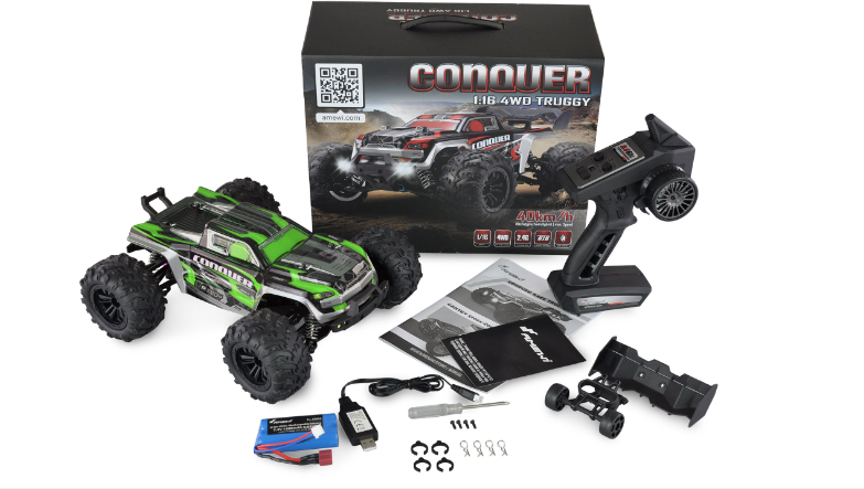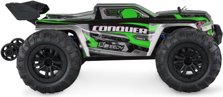 Im Maßstab 1:16 bringt der Conquer Truggy alles mit, das für großartige Action im Gelände benötigt wird: Metall-Kardanwellen und CVD-Antriebswellen vorne sorgen für direkte Kraftübertragung an die Räder. Dank 390er ...