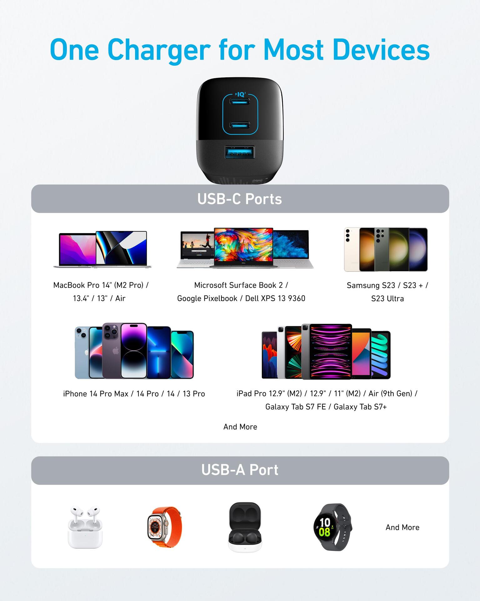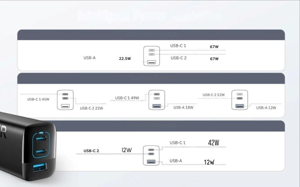 | Schnellladetechnik | Adaptive Fast Charging, GaN, Power Delivery, PowerIQ 3.0, Quick Charge 3.0 |