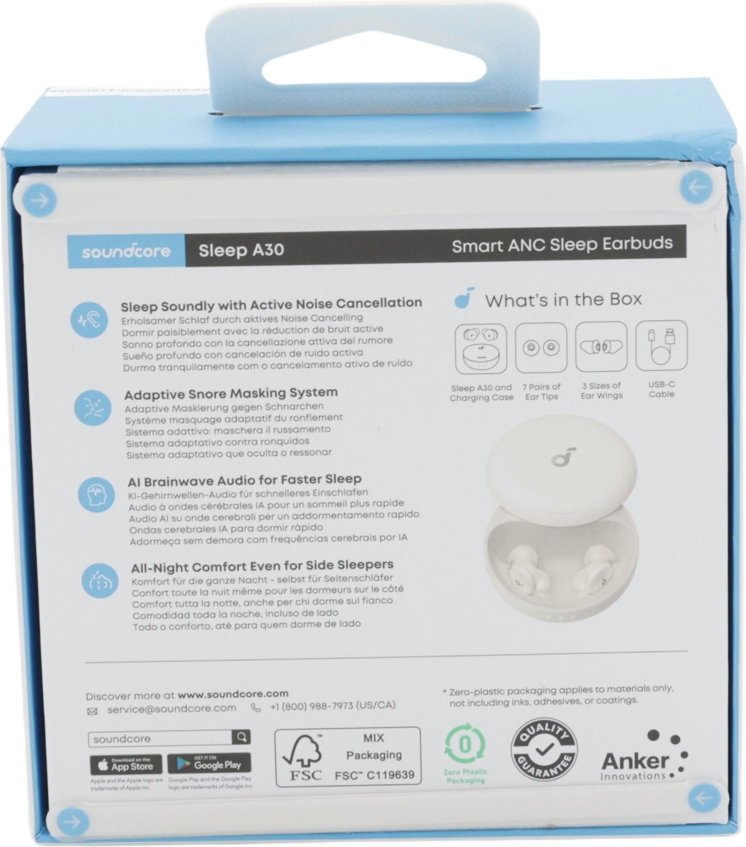 Der Anker Soundcore Sleep A30 wurde für den täglichen Gebrauch entwickelt und verfügt über einen spritzwassergeschützten IPX4-Schutz, sodass er für verschiedene Umgebungen geeignet ist. Das mitgelieferte Ladecase sorgt für eine längere Laufzeit und gewährleistet, dass Benutzer bei Bedarf über ausreichend Strom verfügen. Dank der einfachen Bedienung per Fingertipp war die Steuerung der Musikwiedergabe noch nie so bequem. Die Kombination aus Qualität, Funktionalität und Langlebigkeit macht den Anker Soundcore Sleep A30 zu einem Begleiter für Musikliebhaber und alle, die eine effektive Geräuschunterdrückung suchen.