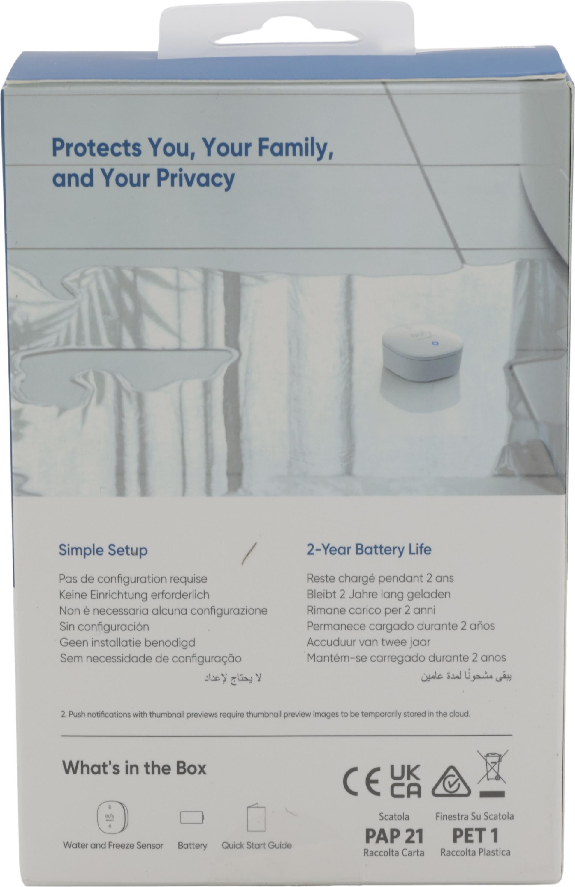 Der Eufy Alarm-Flut- und Frostsensor wurde entwickelt, um Ihr Zuhause vor Wasserlecks und extremen Temperaturschwankungen zu schützen. Dank seiner robusten Konstruktion funktioniert er effektiv bei Temperaturen zwischen -10 °C und 50 °C. Die sofortigen Warnmeldungen des Sensors sorgen dafür, dass potenzielle Probleme umgehend behoben werden, während die LED-Statusanzeigen einen klaren Überblick über den Betrieb des Sensors bieten. Er ist mit der Eufy Security App und Eufy HomeBase 3 kompatibel und lässt sich in Ihr Smart-Home-System integrieren.