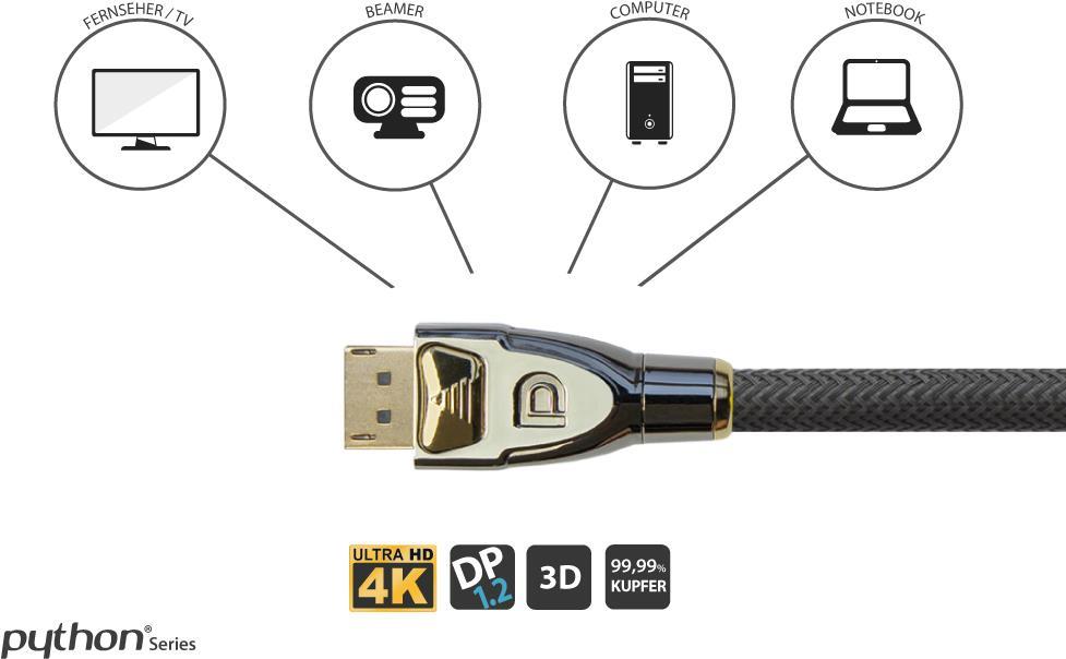 Dieses DisplayPort 1.2 Kabel unterstützt Auflösungen bis zu 4096 x 2160 Pixel bei 60Hz. Die perfekte Verbindung für Ihr neues UHD Display und weitere Geräte mit ...