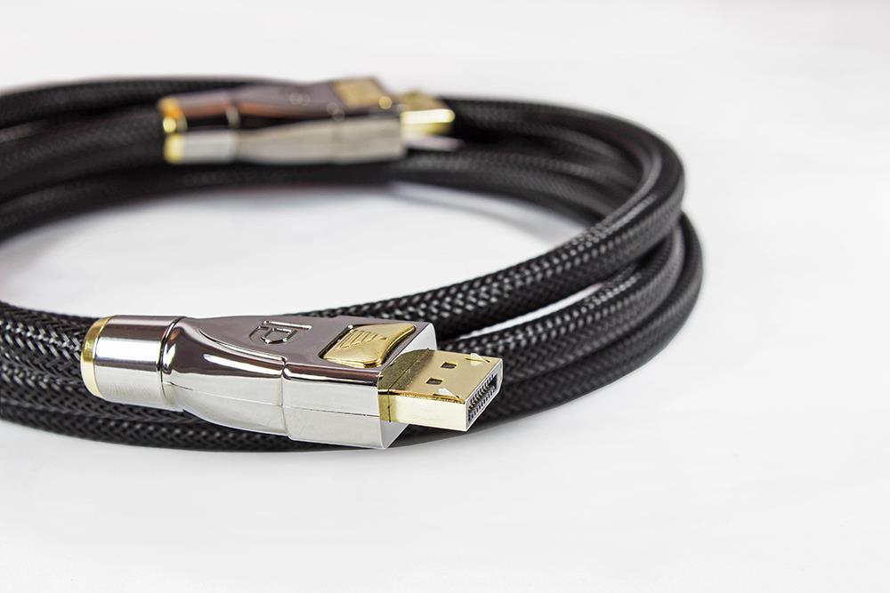 Anschlusskabel DisplayPort 1.2, 4K2K / UHD, Stecker inkl. Verriegelungsschutz, vergoldet, OFC, Nylongeflecht schwarz, 1m, PYTHON® Series (GC-M0070)