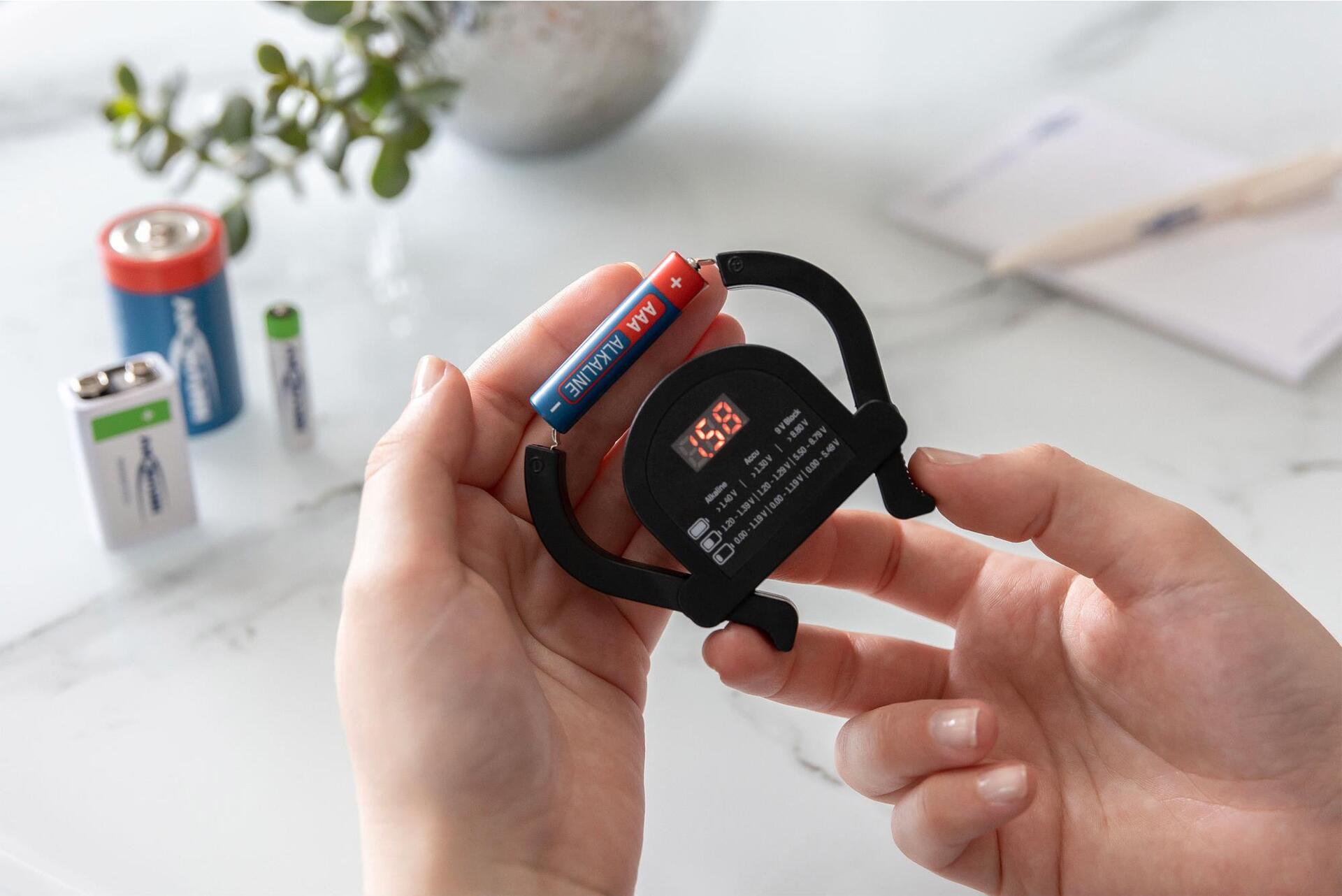 Der handliche Batterietester im Taschenformat funktioniert ohne Batterie oder sonstige Stromzufuhr. Damit ist er jederzeit einsatzbereit, es muss keine Acht auf Stromanschluss oder volle Batterien genommen werden.