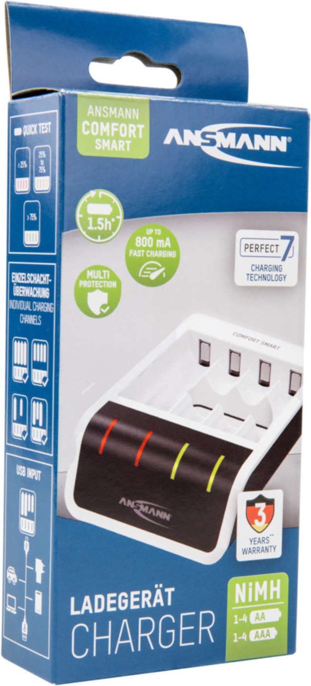 ANSMANN Comfort Smart - 1,5 Std. USB-Batterieladegerät - (für 4xAA/AAA) - 800 mA - Schwarz, weiß (1001-0092)