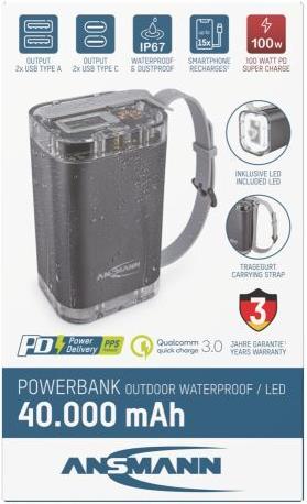Die ANSMANN Waterproof Powerbank - Ein tragbares KraftwerkAusgestattet mit 40000 mAh Kapazität, was bedeutet, dass alle Ihre Geräte ihre Leistung beibehalten können. Mit Leichtigkeit kann die ANSMANN Powerbank das ...