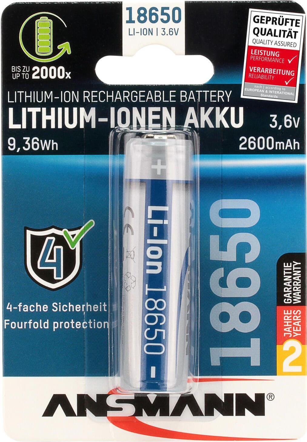 ANSMANN - Batterie 18650 - Li-Ion - 2600 mAh - 9,36 Wh - Silber (1307-0000)