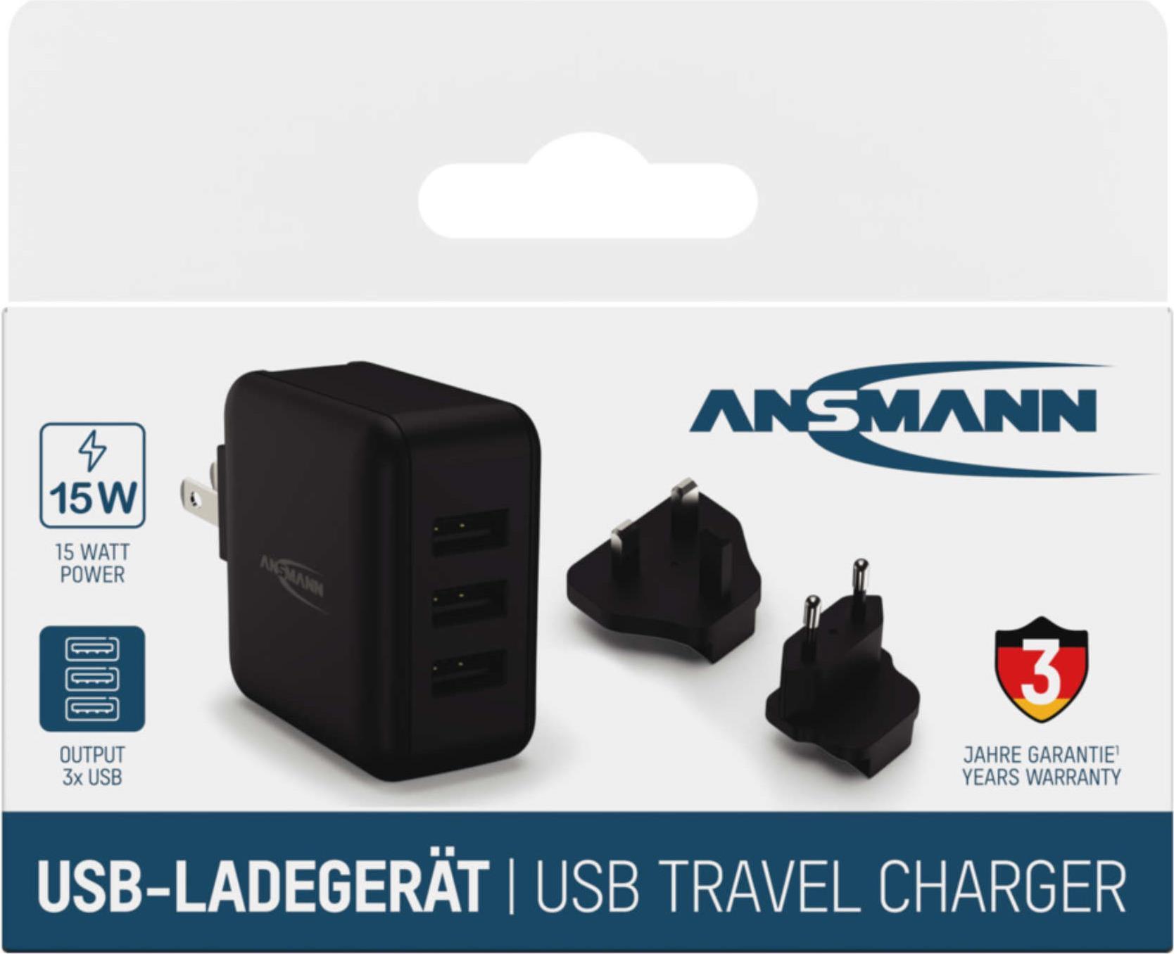 Das USB-Ladegerät von ANSMANN mit 3 USB-Ports und einer Leistung von 15 W bietet die ideale ...