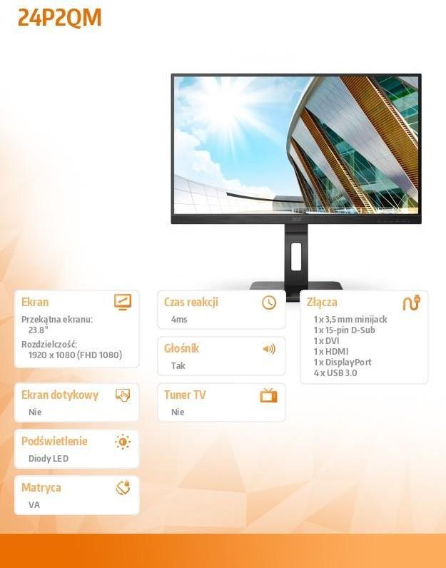 AOC P2 24P2QM LED display 60,5 cm (23.8" ) 1920 x 1080 Pixel Full HD Schwarz [Energieklasse E] (24P2QM)