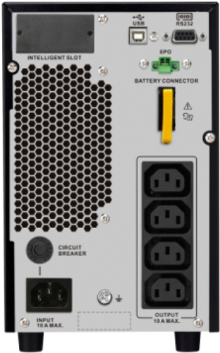 | Besonderheiten | Vertikale Ausrichtung, hörbarer Alarm, Not-Aus, LCD Anzeige, interner Bypass, Eco-Mode, generatorkompatibel, Intelligentes Batteriemanagement, Doppelwandlerprinzip, Alarm bei schwacher Batterie, Überlastalarm |