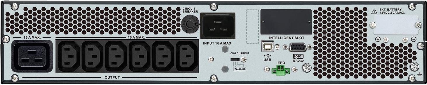 | Besonderheiten | Horizontale Ausrichtung, hörbarer Alarm, Not-Aus, LCD Anzeige, interner Bypass, Kaltstartfunktion, Eco-Mode, generatorkompatibel, Intelligentes Batteriemanagement, Doppelwandlerprinzip, Alarm bei schwacher Batterie, Überlastalarm |
