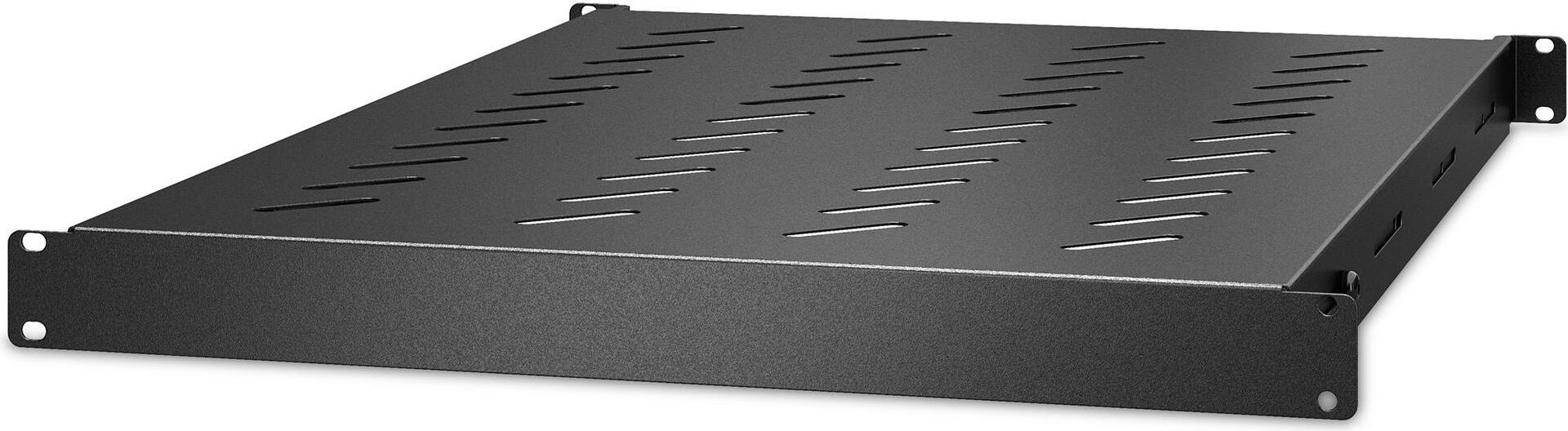 Fester Fachboden, Belastung bis 50 kg, auskragend befestigtes Fach zur Montage von Monitoren oder anderen Geräten in die Rack-Umgebung, schwarz.