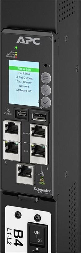 APC NetShelter Rack PDU Advanced (11K-Serie) bietet eine zuverlässige Stromverteilung für IT-Geräte in Server- und/oder Netzwerk-Racks. Geschaltete Steckdosen ermöglichen das Ein- und Ausschalten von Steckdosen aus der Ferne. Die Leistungsmessung auf PDU-Ebene sorgt für Transparenz und Benachrichtigung bei potenzieller Überlastung. 4-in-1-Kombinationssteckdosen, die entweder als C13-, C19-, C15- oder C21-Steckdosen verwendet werden können, bieten eine unvergleichliche Flexibilität bei der Bereitstellung. Maximale Ausgangsdichte mit 42 Ausgängen in einem 5,6 cm breiten Formfaktor ermöglicht mehr Geräte im Rack. Die Ausgänge der PDUs sind farblich gekennzeichnet und nach Unterbrecher beschriftet. Live Swap der NMC3, um die Ausfallzeit im unwahrscheinlichen Fall eines NMC-Stromausfalls zu minimieren. Die Rack-PDU ist über eine NMC3 in EcoStruxure IT integriert und kann über Web, SNMP und Befehlszeilenschnittstelle (CLI) aufgerufen und konfiguriert werden. Ein 3 m langes Eingangskabel erleichtert der PDU den Zugang zum Stromnetz. Der Betriebstemperaturbereich von bis zu 60 °C bei Volllast gewährleistet Zuverlässigkeit und Verfügbarkeit auch in den heutigen High-Density-Installationen. Ein Gigabit-Ethernet-/Netzwerkanschluss (10/100/1000) verbessert und standardisiert die Netzwerkkonnektivität. Zwei Link-Ports stehen für die Kaskadierung von bis zu 32 PDUs zur Verfügung, wobei eine NPS-Funktion (Network Port Sharing) die gemeinsame Nutzung von Strom zwischen den Rack-PDUs in der Kaskadengruppe ermöglicht. Mit einer Messgenauigkeit von 1 % lässt sich der Stromverbrauch zuverlässig verfolgen und abrechnen. Zwei Anschlüsse für Umgebungssensoren ermöglichen den Anschluss von optionalen Sensoren (separat erhältlich). Für den Einsatz in Rechenzentren in mehreren Regionen verfügen diese PDUs über die folgenden Zertifizierungen: UL, CE, CSA, UKCA, Nemiko, PSE, KC, China RoHS, RCM und CMIM. Das Eingangsnetzkabel dieses Modells ist IEC-309 60 A 3P+N+PE und verfügt über 21 C13/C15/C19/C21- Kombi-Ausgänge und 21 C13/C15-Ausgänge.