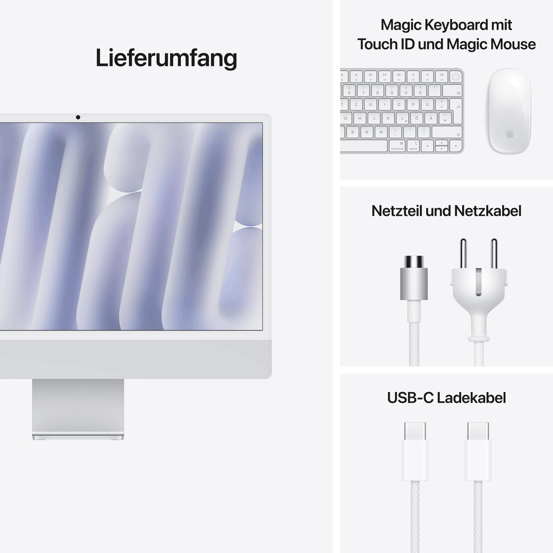 Lautsprecher, Mikrofon (Mikrofonarray), inkl. Maus (kabellos), inkl. Tastatur (kabellos, Magic Keyboard mit Touch ID) |