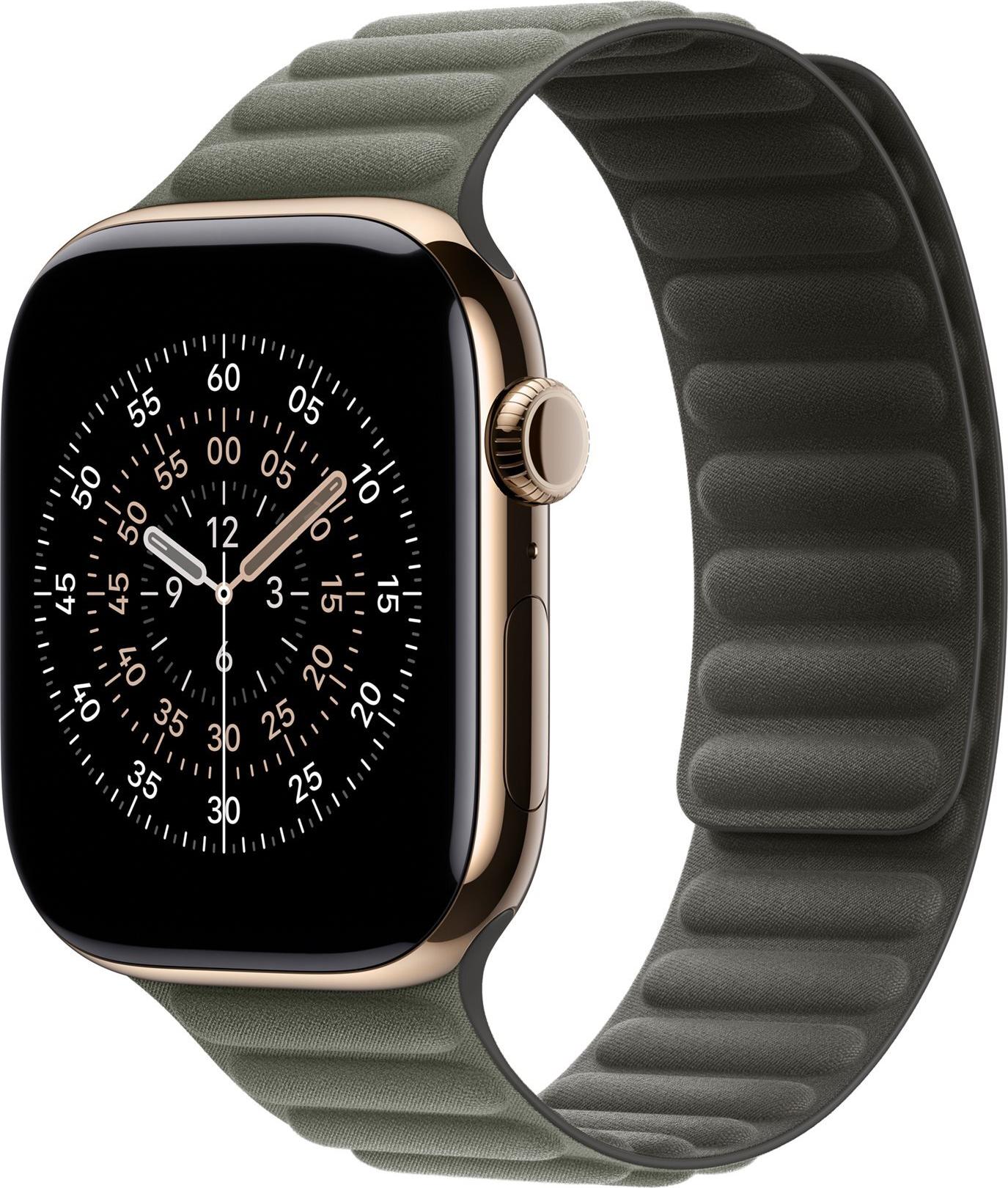 Das magnetische Armband von Apple wurde für Smartwatches entwickelt und verbindet Stil mit Funktionalität. Es besteht aus strapazierfähigem Polyester und FineWoven-Material und sorgt für Komfort, während es sicher am Handgelenk befestigt ist. Es ist mit einer Vielzahl von Gehäusegrößen kompatibel, darunter 44 mm, 45 mm, 46 mm und 49 mm, und ist somit eine vielseitige Wahl für alle Smartwatch-Fans. Der Magnetverschluss ermöglicht eine einfache Anpassung an Handgelenkgrößen von 165 mm bis 205 mm.